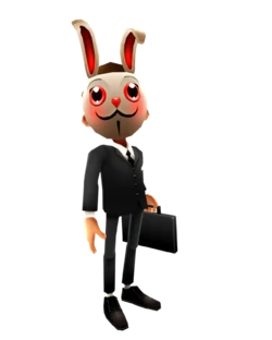 5. 弗兰克:身着黑色西装、手提公文包的上班族形象,实则隐藏着黑客身份,兔子面具下藏着不为人知的秘密。