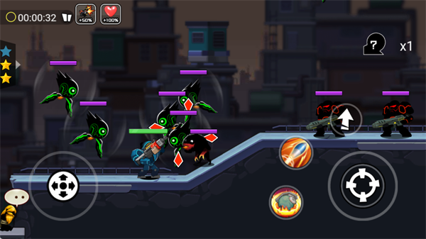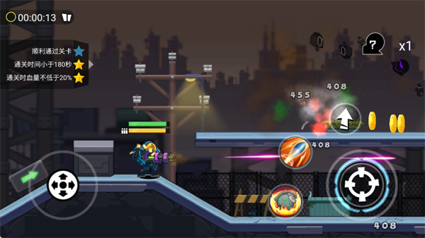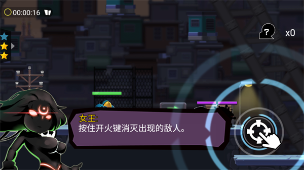 跳跃操作:部分关卡支持跳跃功能,点击跳跃键可翻越障碍或闪避弹幕攻击,灵活运用大幅提升生存几率。