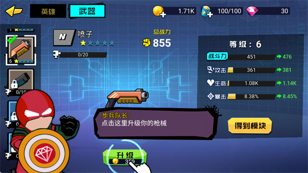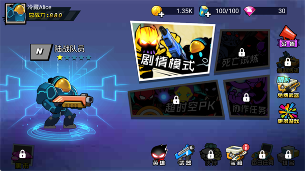 初始角色为陆战队员,通关后可获得英雄碎片,集齐指定数量即可进阶,同步提升攻击、生命、暴击等核心属性。