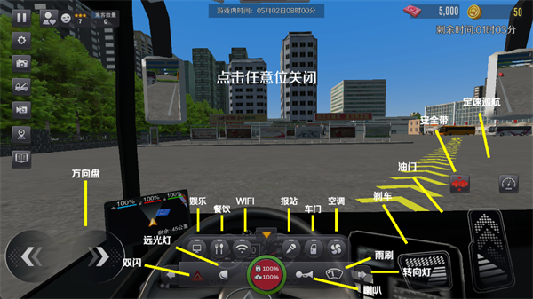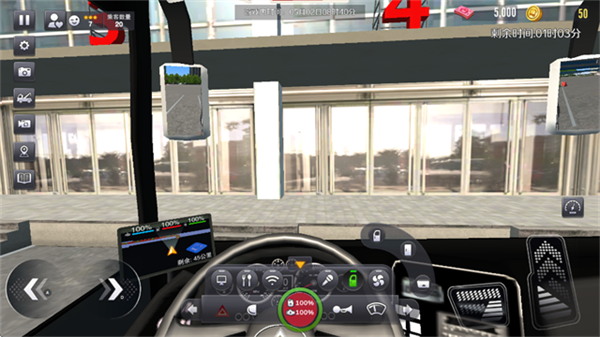 2. 操作方式采用双摇杆设计:左侧控制车辆左右转向,右侧负责油门、刹车及倒车;屏幕下方设有功能按钮,可手动开关车门、切换视角、启动雨刷等。