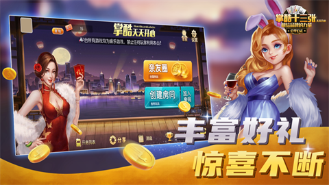 特色赛事玩法:加入“掌酷十三张锦标赛”,点燃竞技热血!报名参赛并投入筹码即可参与积分赛制对决。多轮比拼后按总积分排名,赢取专属头像框、海量金币奖励,更有机会获得线下棋牌交流活动的珍贵入场资格!