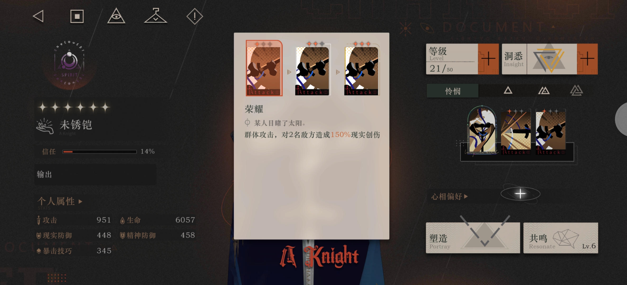 神秘术二荣耀,二阶以上提供出手激情回复,搭配神秘术公义完全决定了他的玩法就是释放二阶以上荣耀辅助压血,释放公义来进一步压低敌人血线或者击杀敌人回复激情,能够更快的释放至终,处理已经控好的场面,触发群体增伤,扩大己方伤害上限。