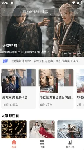 2. 分类浏览:该软件提供了多种分类方式,允许用户根据自己的喜好选择和浏览不同类型的影视内容。