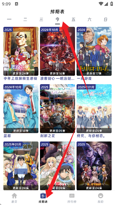 3、来到排期表中大家可以看到一周的番剧排期。让你轻松掌握番剧动态。