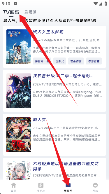 4、而在排行榜中可以了解到比较热门的番剧作品,