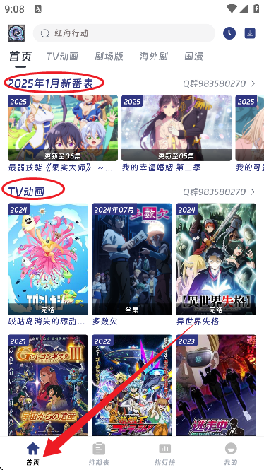 2、进入到软件首页,如图所示。这里能看到最新的追番表,以及TV动画。