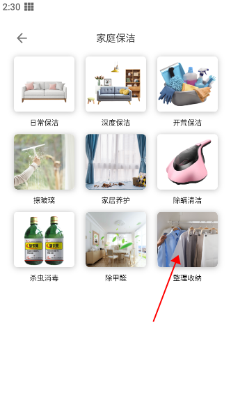 2、进入细分服务页面后,根据实际需求进一步选择具体类型(如“整理收纳”)。