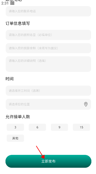 3、填写详细服务地址、时间要求及联系方式,确认无误后点击“发布”,即可等待附近技师接单上门服务。