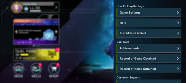 游戏王大师决斗内置菜单,游戏中收录了多达九千种各具特色的卡牌,玩家可自由挑选并搭配不同属性与效果的卡牌,组建独具个人风格的卡组,充分体验策略博弈的乐趣,让每位玩家都能在对决中找到属于自己的游戏乐趣。