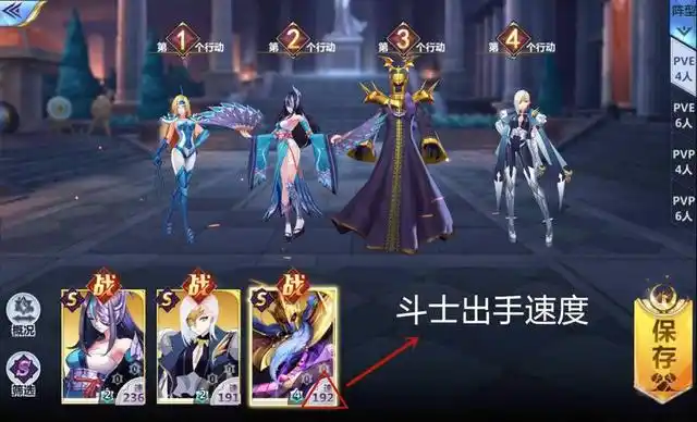 不同的斗士具有不同的初始速度,这是由斗士本身的属性决定的。所谓先下后为强,在PvP对战中,速度对于战局至关重要。有些斗士具有改变速度的技能,也有很多小宇宙能够提速或者减速,所以通过合理的小宇宙和阵容搭配,斗士的出手速度可以按照玩家自己的意愿来安排。
