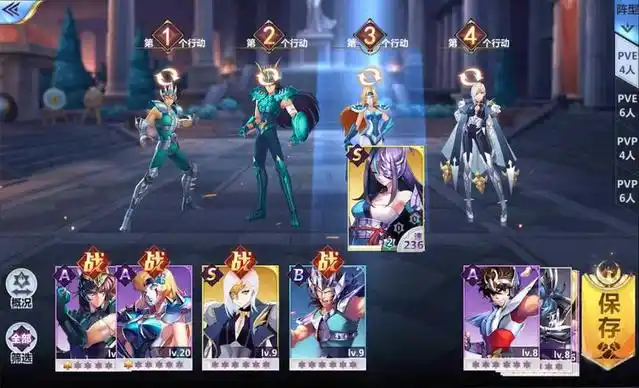 拖动斗士卡牌可以更换上阵角色,可以保存4套阵容。与好友组队挑战副本时,自己上场的英雄自动保存。