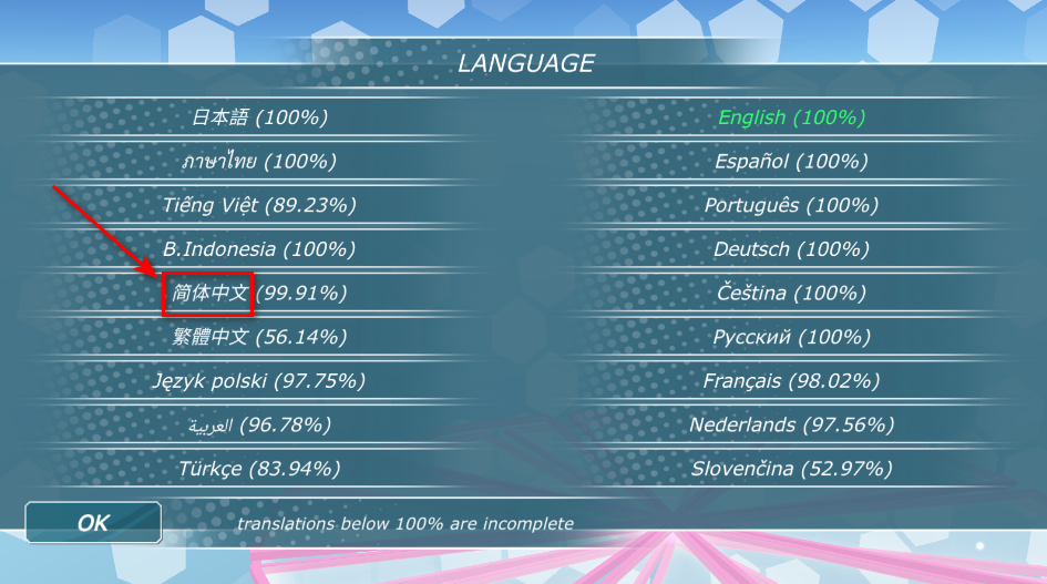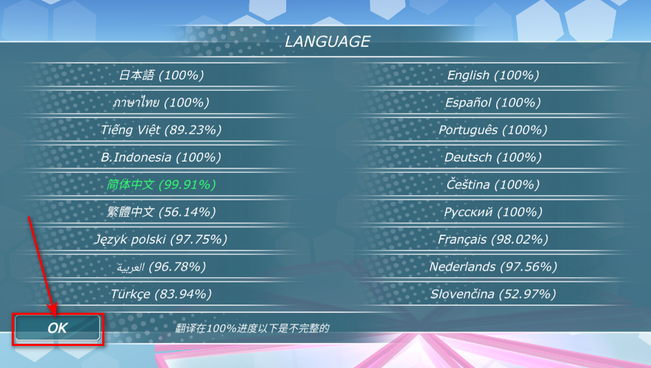 4.然后选择ok,翻译不是100%的不过也很高了,大家基本可以畅玩。